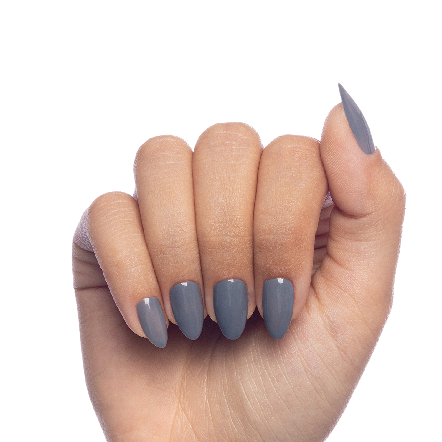 Steel grey. Medium. Opaque. Cool undertone.